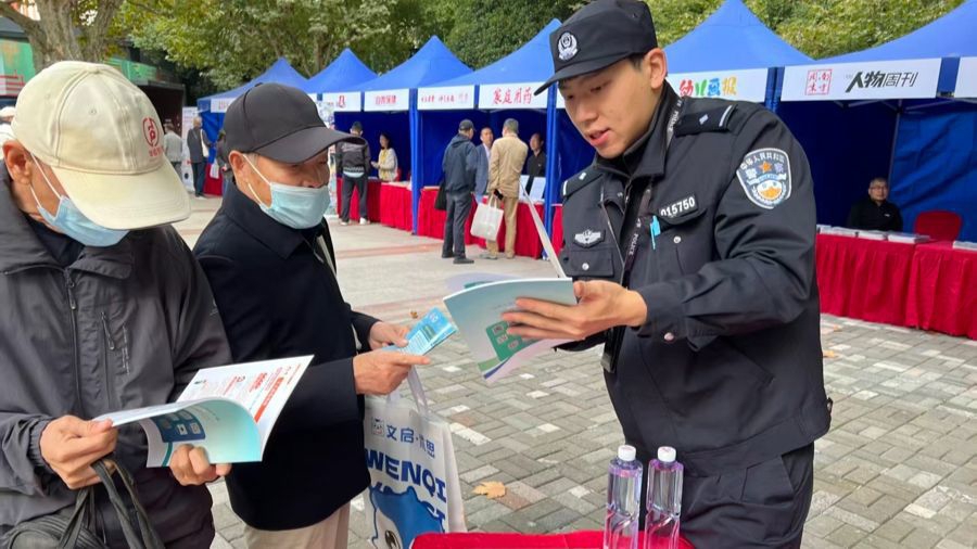 除了发放资料,民警还设计了互动环节。围绕近期高发的“投资理财”“冒充客服”“保健品推销”等针对中老年人的诈骗套路,现场开展有奖问答。“接到自称‘公检法’要求转账的电话该怎么办?”问题一出,市民踊跃抢答,在轻松氛围中记住了防骗要点。