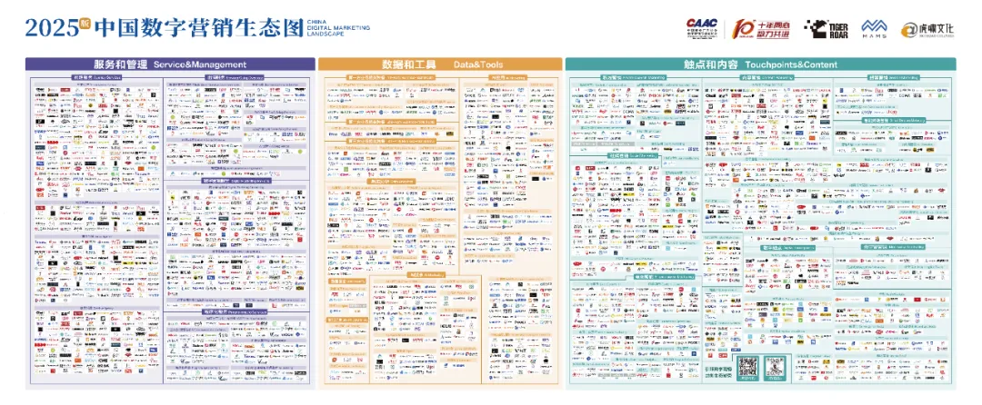 11月28日,在北京举行的第十三届数字营销峰会上,由秒针营销科学院联合中国商务广告协会数字营销委员会、虎啸文化及虎啸奖共同征集研究的《中国数字营销生态图(2025版)》正式发布。